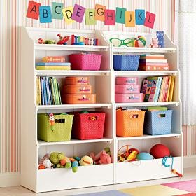 2- Crie espaços específicos para as coisas, livros, brinquedos grandes, brinquedos pequenos e assim por diante... Não esqueça de legendar os espaços para que eles saibam como manter!