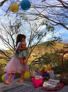 Se o pic nic for ao ar livre (como o nosso), uma ótima ideia é usar, pendurado nas árvores, balões coloridos, pompons em papel de seda e lanternas japonesas. No nosso picnic usei lanternas japonesas do aniversário de 3 anos da Ana Luiza, uma ótima oportunidade para reaproveitar aqueles materiais fofos e que ficam guardados no fundo do baú! :)