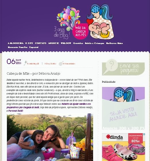 Essa coluna do blog da Bia é tudo de bom e por lá já passaram muitos exemplares de mães da cabeça aos pés contando suas experiências de formas diferentes mas com um mesmo sentimento que une a todas - o amor - por seus filhos, pela maternidade.
